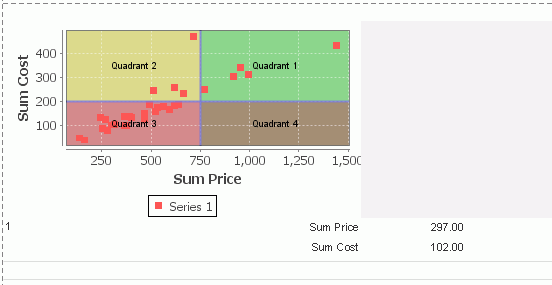 Report provides you with a demo UDO, with which you can insert a quadrant chart into a banded object. This demo UDO requires four JAR files: myudo.jar, jfreechart-1.0.13.jar, jfreechart-1.0.13-swt.jar, and jcommon-1.0.16.jar. You can get myudo.jar in <install_root>\help\samples\UDODemo\JQuadrantChart, and you can further edit it if you want. You can download the rest three JAR files from the website: www.jfree.org/jfreechart.