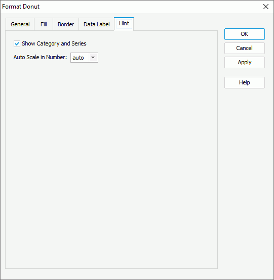 You can use the Format Donut dialog box to format the donuts of a donut chart. This topic describes the options in the dialog box.
