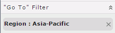 This is because, when you perform a go-down action, Server creates a filter based on the value you select on. In this example, we first select on the Asia-Pacific region, so Server drills this region to the lower level to display countries in Asia Pacific, and thus creates the filter Region = Asia-Pacific. If you want all data in the one-level-lower group to display when you drill down a group, you can remove the corresponding filter from the "Go To" Filter panel, by selecting X beside the filter condition.